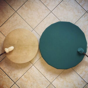 Le tambour en tissu n’a pas cette dimension sacrée, mais est un excellent instrument d’ancrage.